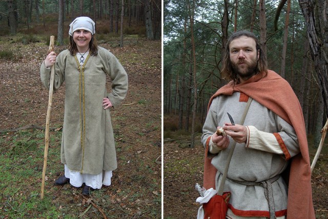 Photo de droite: le manteau est cousu à la main selon le patron historique et le galon sur mon manteau est tissé aux tablettes avec des fils teints aux oignons et à la ronce + fer