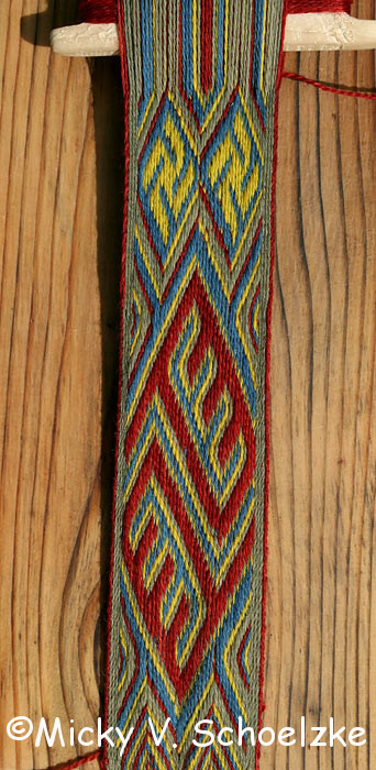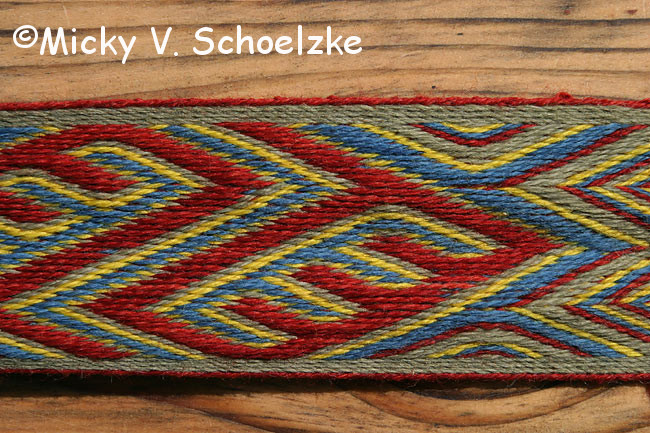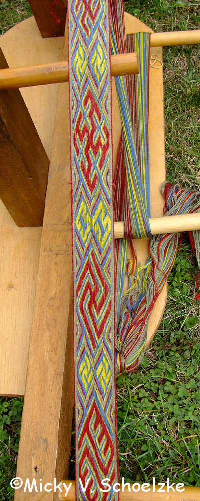 Addendum: voir ici une photo de la reconstitution de l’original au musée d’Oslo (l’original semble avoir 8 tablettes de bordure de chaque côté du galon)