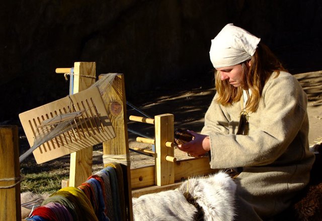 Cette fois-ci, nous inaugurions notre forge de campement, alors nous alternions démonstrations de tissage et démonstrations de forge (c’est moi qui actionne les soufflets, croyez-moi, c’est de la musculation dans les cas où le foyer a du mal à monter en température! )