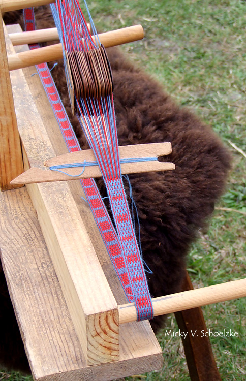 J’avais monté les 22 tablettes en missed-hole et j’ai « crée » un motif mélangeant l’aspect du « pebble weave » avec des motifs style Snartemo 2: