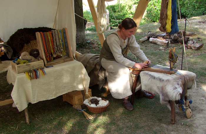 Plus d’une centaine de reconstituteurs scandinaves, vikings et francs se rassemblèrent donc à Verneuil. Pour moi, c’était la troisième fois que je venais en campement à Verneuil, cette année avec une nouvelle association, les Ateliers Vagabonds (nous sommes deux, à proposer des démonstrations de forge et de tissage/filage).