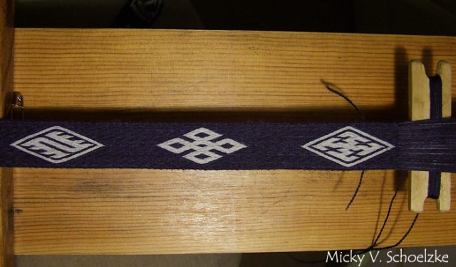 La technique du sergé, ou plutôt de ce qu’il faudrait appeler « faux sergé » en tissage aux tablettes est fascinante! les motifs sont d’une finesse et d’une définition superbes et les possibilités multiples. je voulais approfondir cette technique, notamment pour être capable de créer mes propres diagrammes, donc il fallait travailler sur de nouveaux motifs.