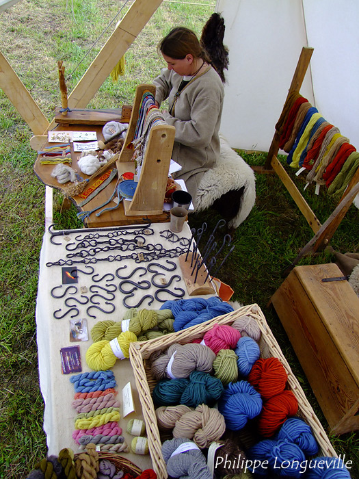 Dimanche, j’étais présente lors d’une fête médiévale « Une journée au Moyen-Age » à Bû (28), village où je travaille au collège d’ailleurs. Cette fois ci, c’était avec le campement mais malheureusement sans mon forgeron. J’avais emmené de la laine mordancée, des feuilles de bouleau et de la racine de garance.