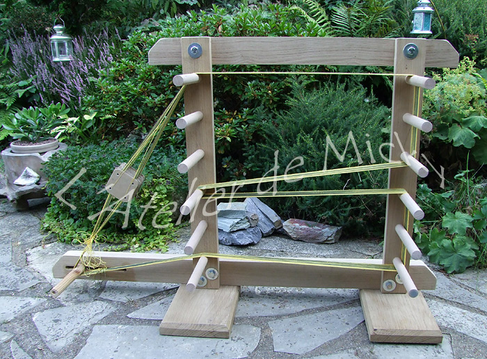 Mon ancien métier à tisser, réalisé par mes soins en bois de pin, commençait à montrer de très sérieux signes de fatigue! Le pin est un bois trop tendre pour résister aux formidables contraintes qu’exige le tissage aux tablettes! Je me suis donc adressée à une association rencontrée ce printemps: la menuiserie solidaire de Rouvres (28), qui travaille principalement à partir de bois de récuperation.