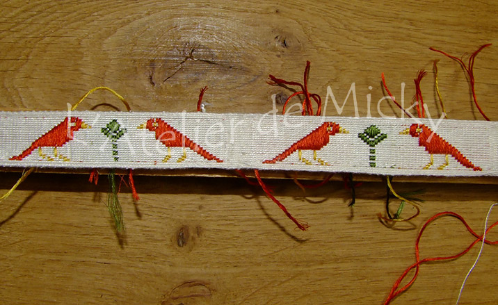 Ce galon va partir à Assise, chez les sœurs du couvent, ce qui me fait très plaisir! Il me reste à le coudre sur une bande de tissu afin de protéger l’arrière du tissage.