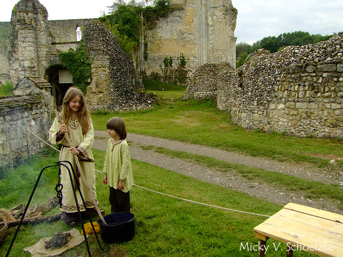 Pour le long week-end du 15 aout, je m’étais inscrite comme artisan exposant à la fête médiévale de l’Abbaye de Mortemer, près de Lisors dans l’Eure. J’en ai profité pour inviter mon amie Isabelle et ses deux enfants. Non seulement ses broderies sont sublimes, mais en plus, c’est ma testeuse de fils! Comme je ne brode pas moi-même, il est important que je sache quels fils s’y prêtent dans ce que je vends. Si un fil ne passe pas le « Test Isa », il est écarté sans ménagement!