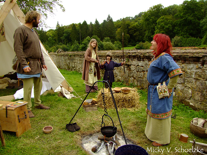 Photo de fin de camp avec nos voisins directs: Aldaelendor Klan, Kirkenes l’échoppe et la Hird de Hrólfr