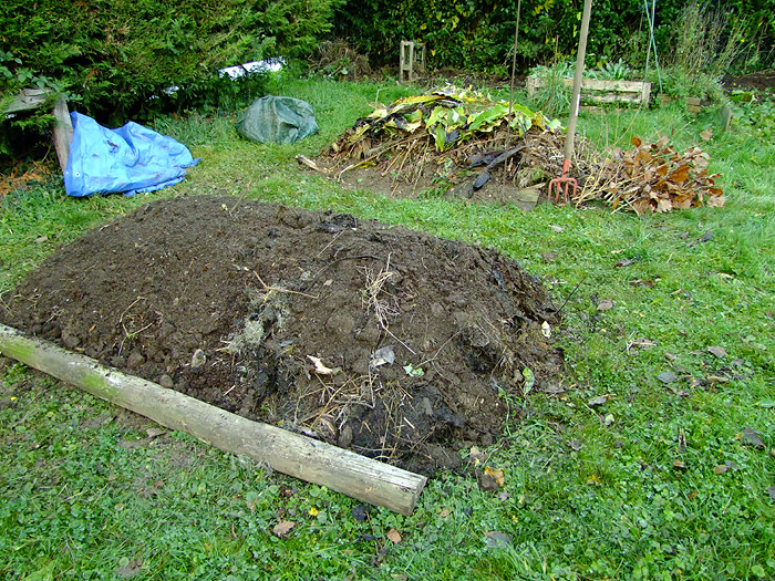 Je viens de commencer deux buttes d’environ 4m de long qui ne seront sans doute pas prêtes pour le printemps, mais en automne dernier, j’ai réalisé 2 petites buttes-test qui devraient pouvoir être utilisées pour les repiquages d’avril ou mai de la renouée…