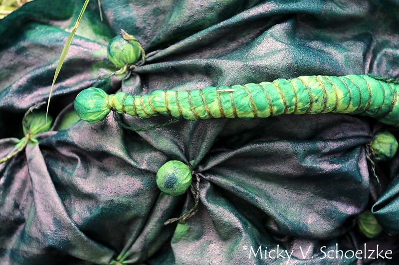 Pour le arashi shibori, on enroule la pièce de coton en diagonale autour d’une pièce ronde et on lie en plissant le tissu au fur et à mesure. Tutoriel très simple ici.