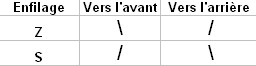 Avec une chaîne unie, on réalise des « motifs » structurés en jouant uniquement sur deux facteurs: l’enfilage S ou Z et les sens de rotation des tablettes. Donc une chose importante à avoir en tête est ce tableau: