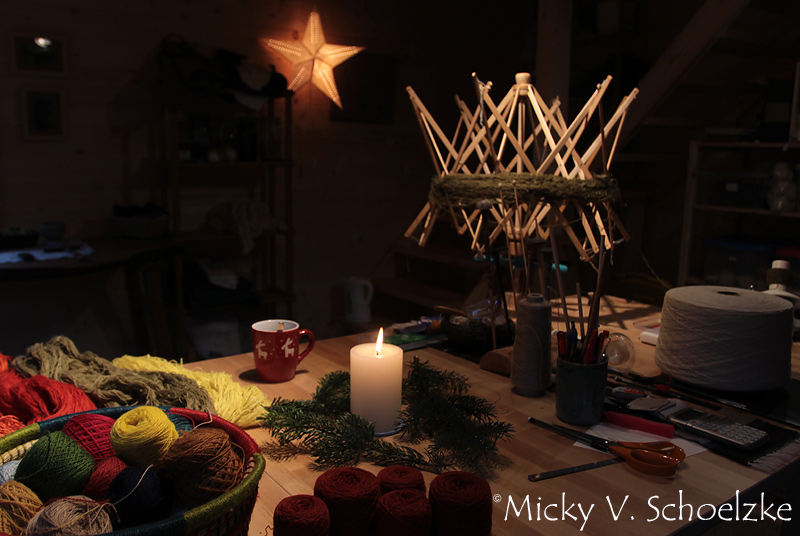 Pendant les fêtes, j’ai été occupée à continuer à teindre d’autres laines également et j’avais décoré un peu mon atelier, histoire de mettre un peu de lumière dans cette saison sombre! During the holidays, I worked on some other dyes and I decorated my workshop a bit to put more light into this dark season!