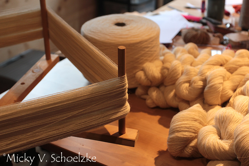 Avant de teindre, certaines laines doivent êtres mises en écheveaux… Before dyeing, some wools have to be wound into skeins…