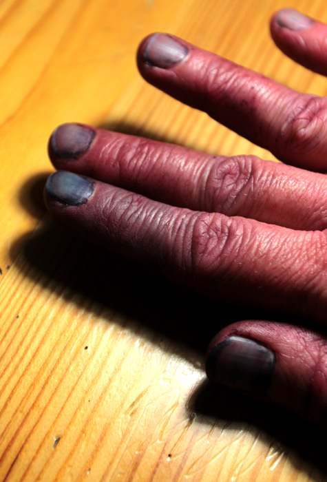 Quand on teinte à la cochenille et à l’indigo le même jour… When you dye with cochineal and indigo on the same day…