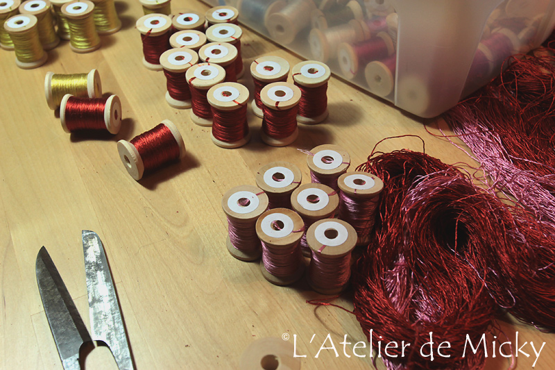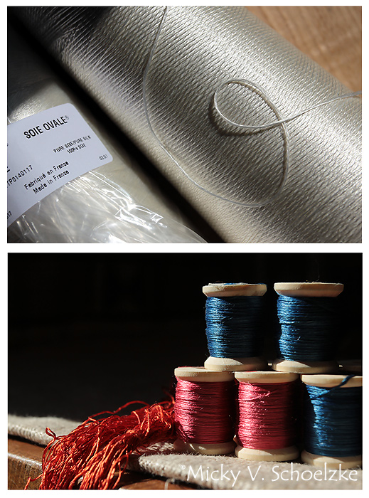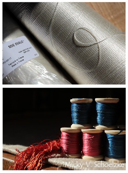 La question que vous allez peut-être me poser, c’est « mais qu’est-ce qu’on peut faire avec cette soie? » Pour un usage historique, elle peut servir en tissage aux tablettes broché (en remplacement d’un fil métallique) ou en broderie. J’avais écrit un article sur le sujet en 2015, vous pouvez le consulter ici.