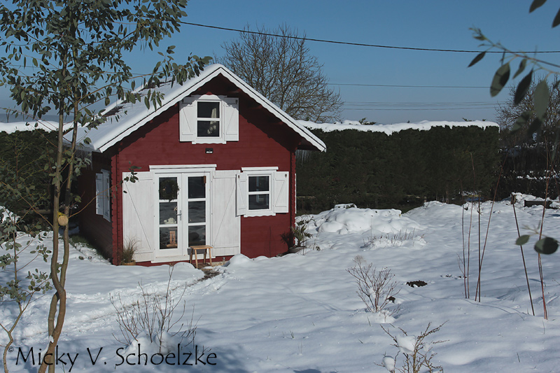 It’s rare enough in our parts to deserve a blog post and a few photos… The workshop looks so nice in the snow, and it feels cosy to work inside, watching the white softness and the birds feed on seeds left for them.