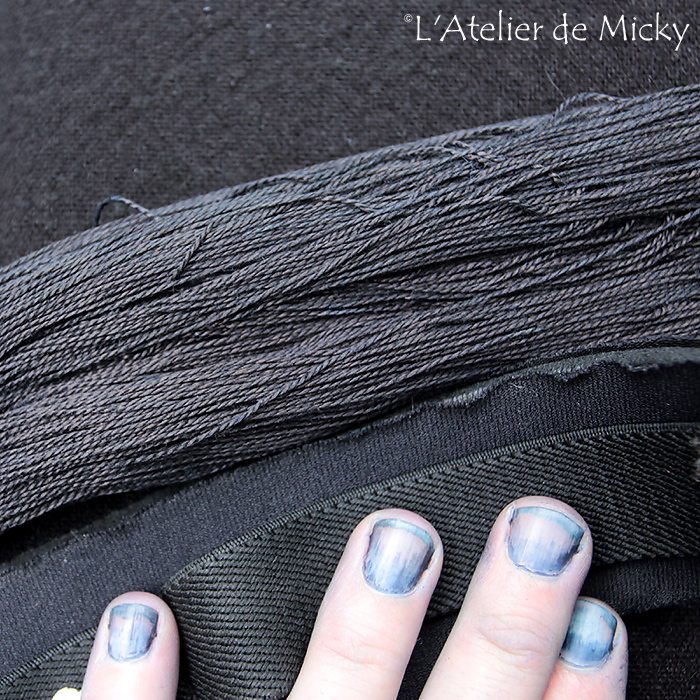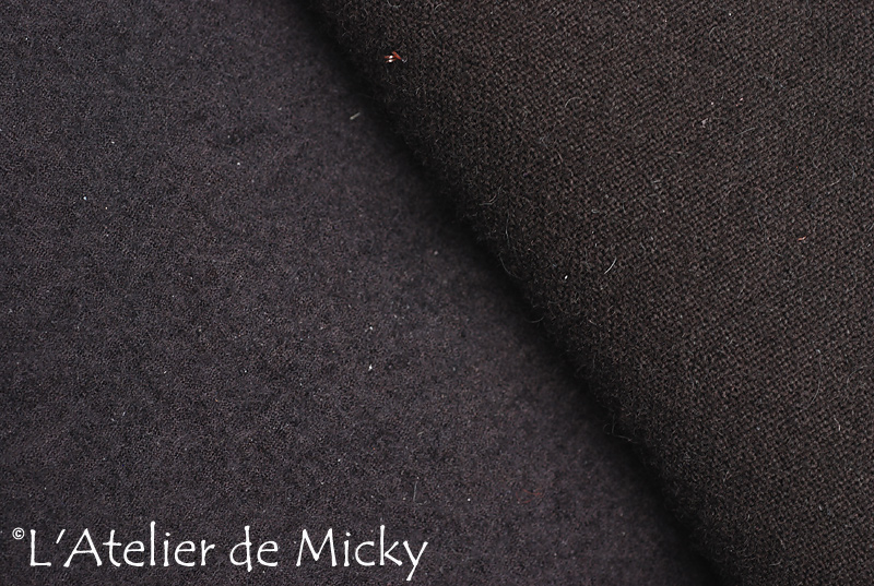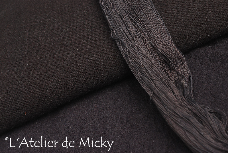 Mes efforts ont été récompensés, j’avais mes noirs!! En bas à gauche, le sergé fin et en haut à droite le drap plus épais.