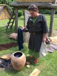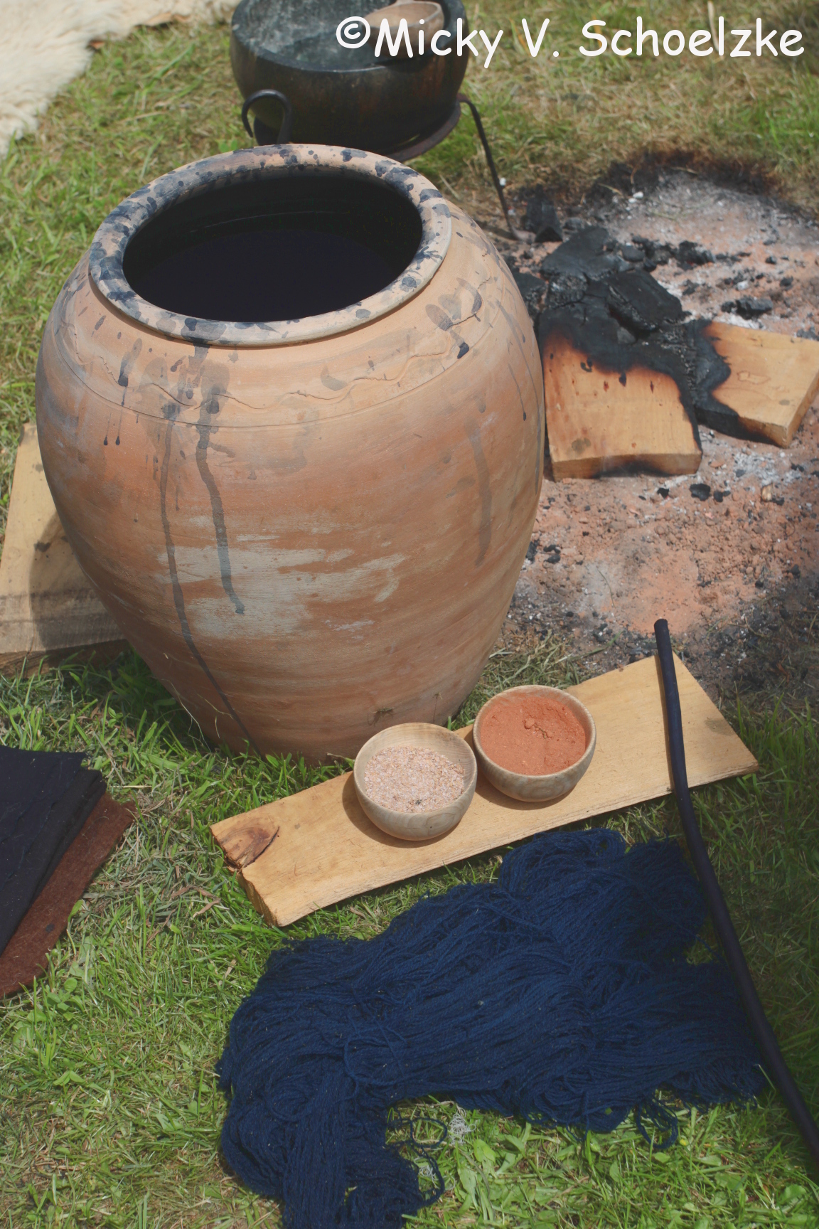 This time, it wasn’t a festival but a small merovingian gathering, so there was less pressure. I took advantage of that to baptize my dolium, that will be dedicated to blue vat experimentations (to be continued… this is just the start!). The dolium has been custom-crafted by swiss archeo-potter Pierre-Alain Capt in 2016, I had chosen this type of pottery to have a smaller opening and therefore less oxydation surface, with a volume that would be interesting to use. Mine is a bit over 30l of volume. To know more about how a dolium is made, you can visit Pierre-Alain’s page.