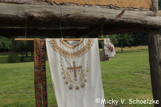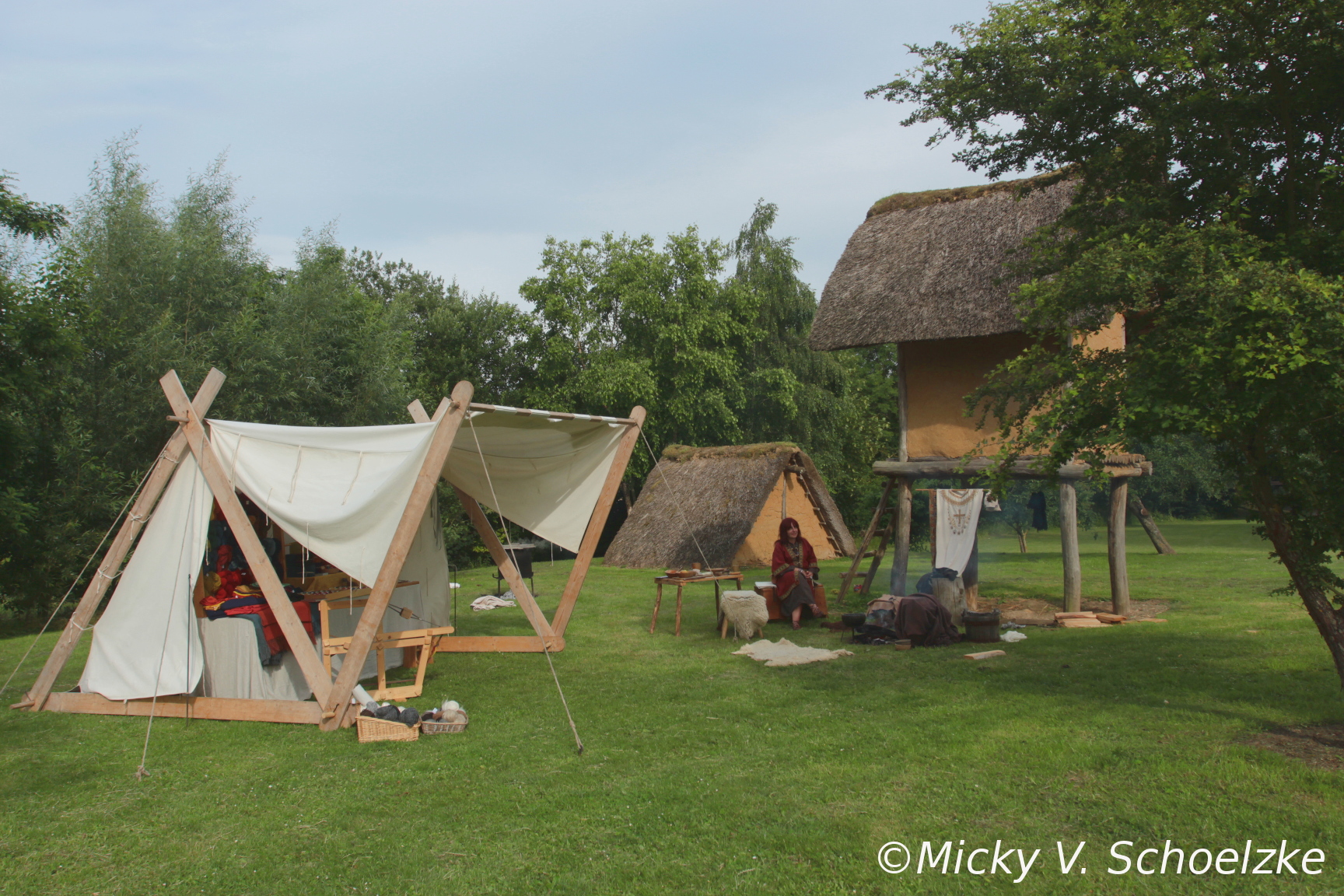 La première fois que j’ai été invitée à Marle au Musée des Temps Barbares pour y exposer mes produits, c’était en 2013. Je n’en étais alors qu’au début de mon aventure professionnelle dans l’artisanat textile historique et j’avais été très intimidée par la qualité des reconstitutions présentées durant le festival d’histoire vivante (Romains et Barbares 2013). Nous osions à peine nous changer pour mettre nos costumes, nous nous sommes trouvés tellement dépenaillés, c’est dire! Cet événements m’a marquée et donné envie d’aller plus loin dans ma propre démarche et également de faire toujours mieux dans mon travail… c’est donc à chaque fois avec un immense plaisir que je retourne sur ce site qui m’a tant donné!