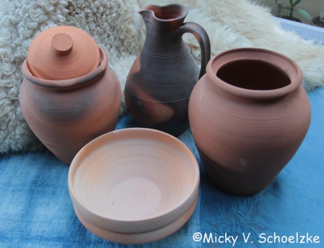 Comme le forum a lieu dans les locaux d’un labo d’archéologie expérimentale spécialisé en poterie, j’ai profité de la conférence pour acquérir quelques poteries qui seront bien utiles pour les prochains campements… l’un des pots à cuire va être utilisé pour la teinture!