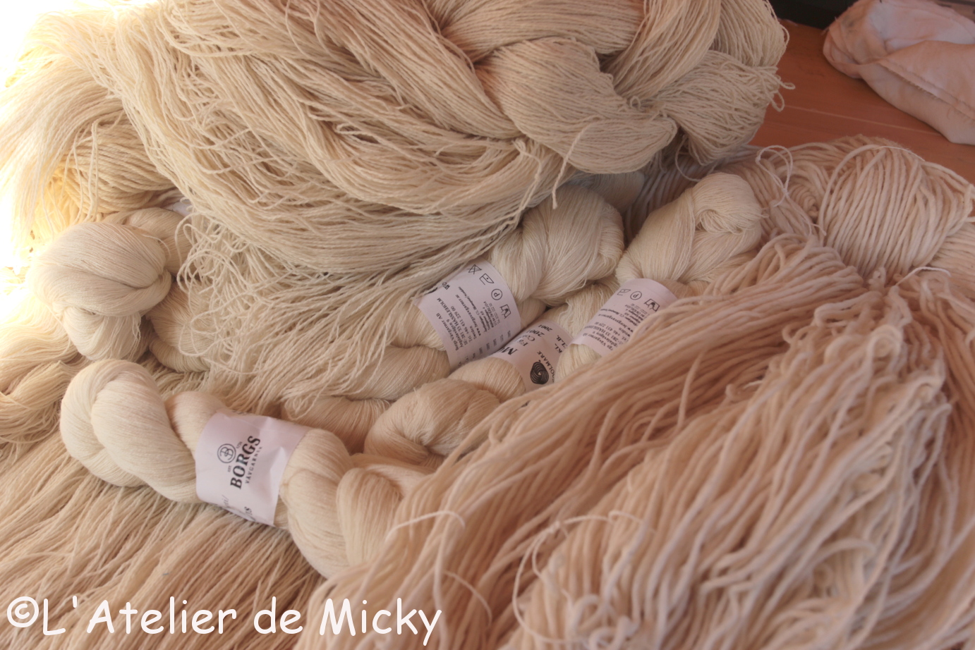 C’est également l’époque de l’année où de grandes quantités d’écheveaux de laine non teintée arrivent à l’atelier…