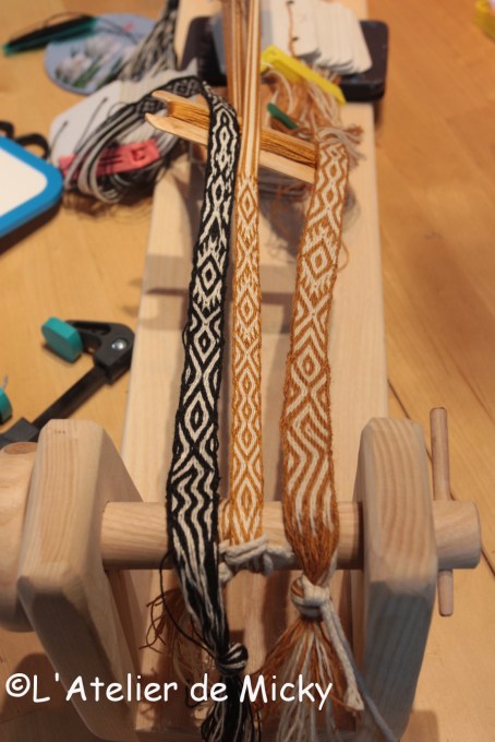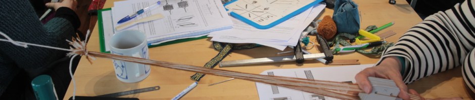 For a few years now, I give tablet weaving workshops for beginners or more advanced weavers at my place. As I don’t have much time to weave anymore, it’s agreat pleasure to pass on some of my modest knowledge. In march, I had a few motivated beginner trainees who I happily tortured with a lot of tablet weaving theory!