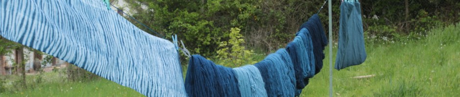 En parlant de verts, voici des bleus indigo qui vont, pour la plupart, devenir des verts avec une teinture gaude. Les doubles teintures indigo et gaude pour le vert sont toujours compliquées et demandent du temps et plusieurs procédures pour être prêts, mais je les aime.