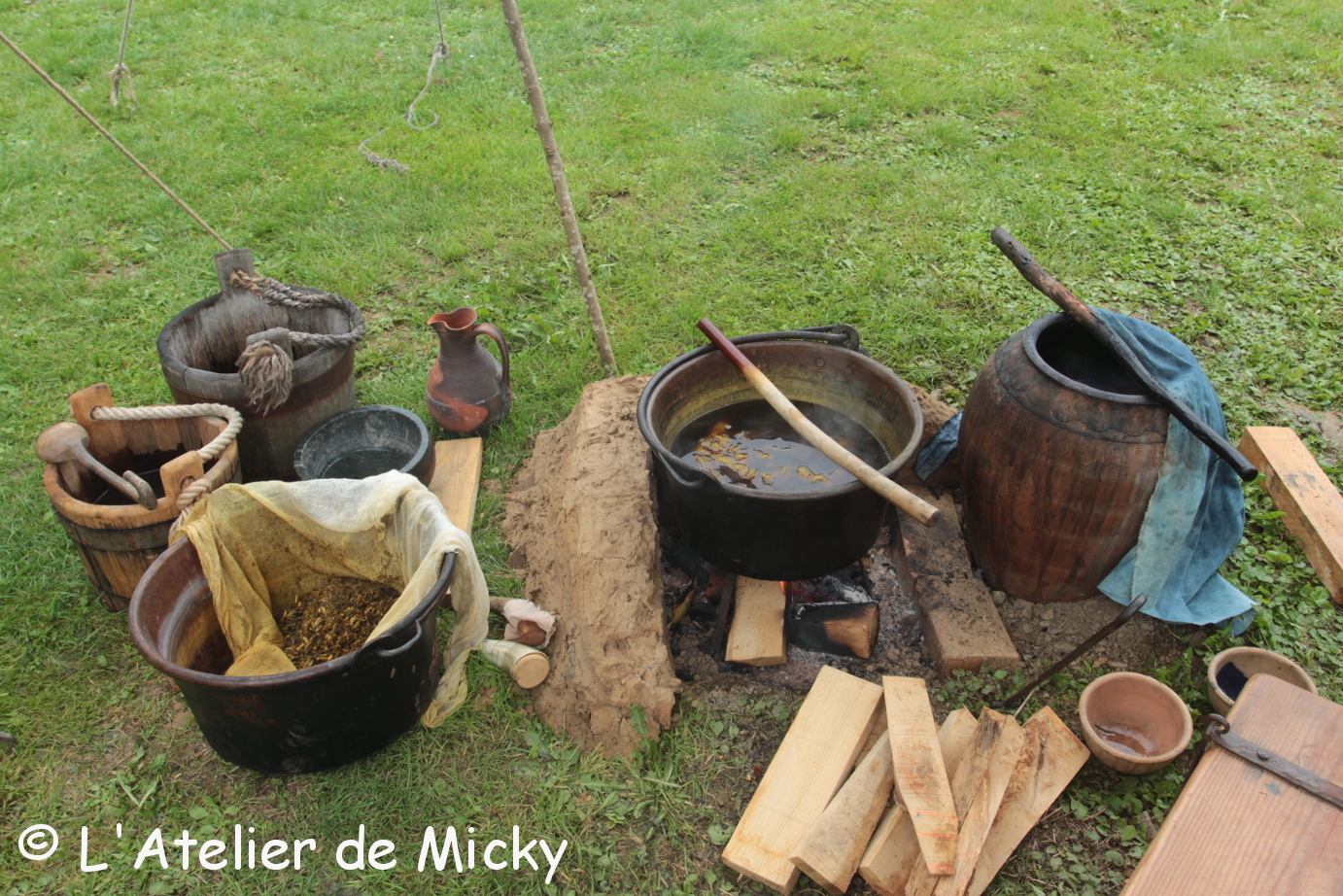 I was waiting impatiently for this event and now it’s behind me already! It’s always a great pleasure to come back to Marle, for smaller or bigger events like this one! In 2013, I was invited for the first time there to put up my stall. I was a shy crafter at that time and when we arrived and saw all the beautiful costumes, we almost didn’t dare to dress in ours! To have some reenactors that I had admired for some time coming to see my things and making me compliments was a great joy and it made me wanting to be always better in reenactment as well as in my craft. It’s a long way towards always more excellence that I’m on now, with its joys and doubts, but my Marle 2013 was a milestone on that way. I will never forget that!