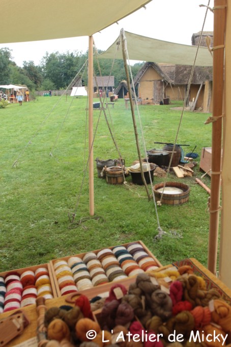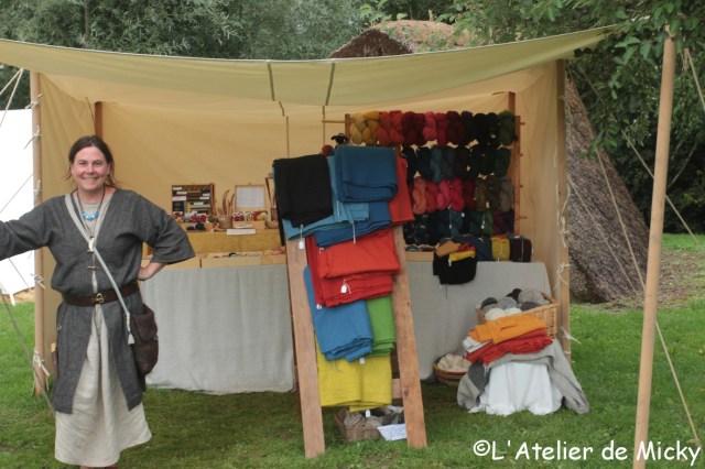 Je l’attendais avec impatience, le voilà déjà derrière moi! C’est toujours un bonheur de revenir au Musée des Temps Barbares de Marle, pour de petits événements ou bien de plus gros festivals comme celui-ci! En 2013, j’ai été conviée à poser mon stand à mon premier festival de Marle, Romains contre Barbares. J’étais une artisane timide à l’époque et lorsque nous sommes arrivés, nous avons à peine osé nous mettre en tenue devant les magnifiques costumes des troupes présentes! Voir des reconstituteurs que j’admirais de loin depuis longtemps venir me voir et me faire des compliments sur mon travail fut un grand bonheur pour moi et cela m’a encouragée à vouloir devenir toujours meilleure dans ce que je fais, aussi bien en reconstitution historique que dans mon artisanat. C’est un long chemin vers toujours plus d’excellence que j’arpente maintenant, avec ses joies et ses doutes, mais mon Marle 2013 aura été un jalon important sur ce chemin, un jalon que je n’oublierais jamais!