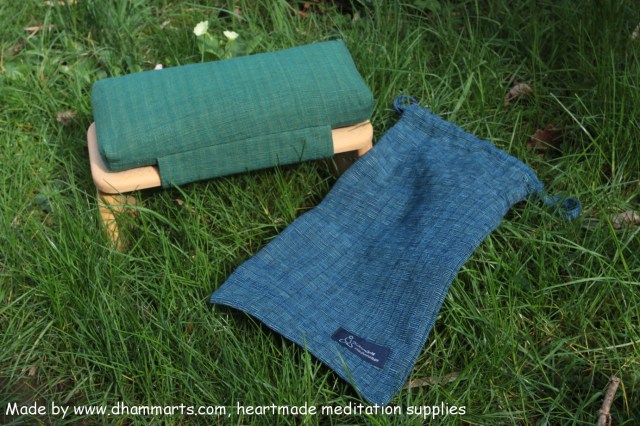 J’ai récemment adopté un shoggi, un petit banc de méditation légèrement incliné qui permet une position à genoux très confortable, les fesses sur le banc, jambes repliées sous celui-ci. La colonne vertébrale est bien droite et alignée, je trouve cette assise extrêmement agréable!