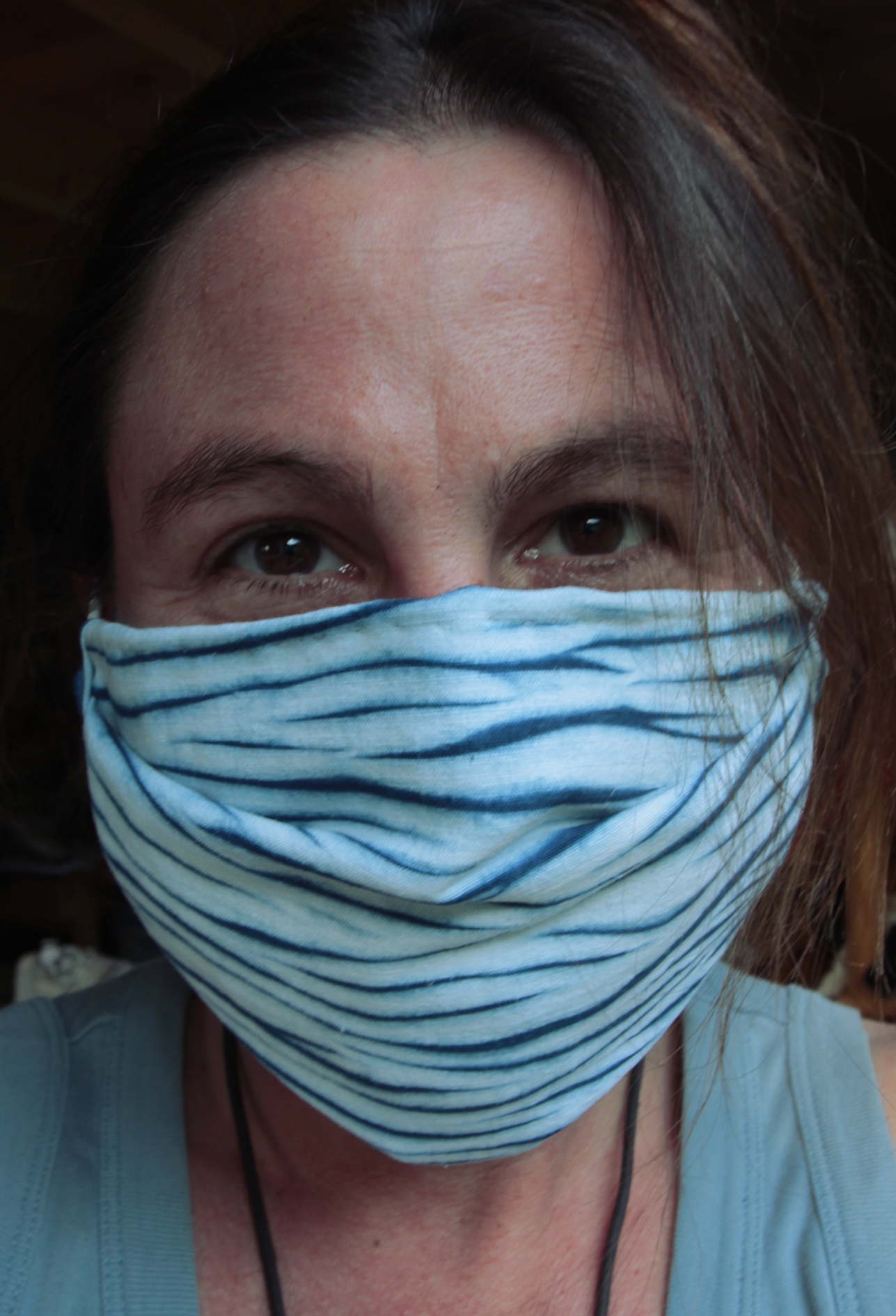 And while I was at dyeing… Triple layer folded mask. Inside is a layer of vintage handwoven linen with a really tight weave!