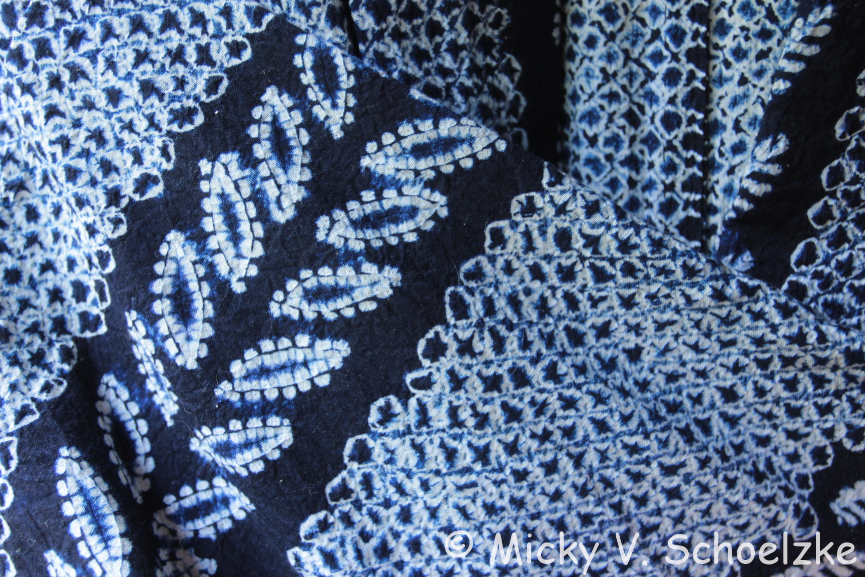 As I said, I’m a big beginner, but I’m a great fan of shibori and I’m lucky to have a few japanese antique pieces, with a very impressive technique of thousands of tiny knots… Can you imagine the work required for each piece?? Here’s a detail of my my vintage yukata (kimono), dyed with indigo.
