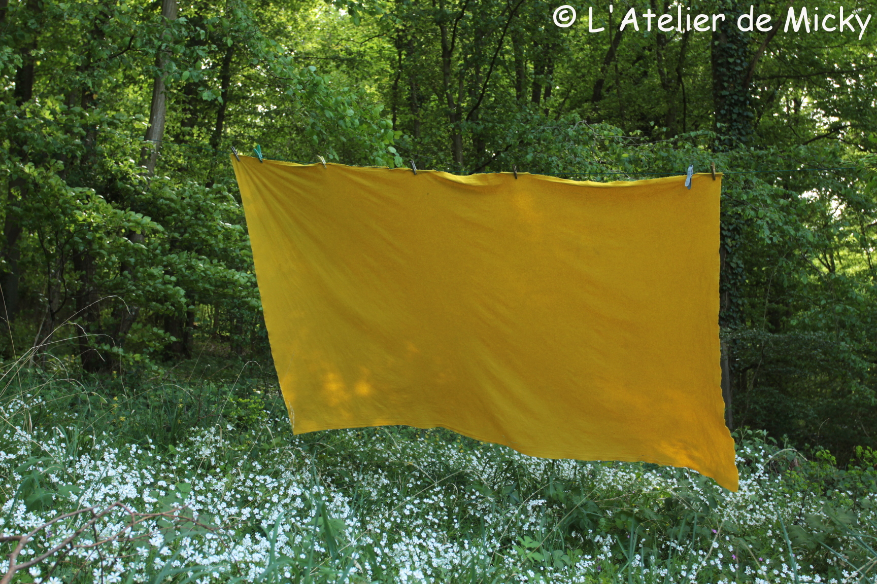 Here are a few images of a dye on wool fabric, I had two pieces to dye in a « golden yellow » as desired by my clients. I used weld in an alkaline bath, then I had to dose some madder to go towards a warmer yellow without stepping into orange. It’s not easy, there’s no recipe, I do everything by instinct and eye, but it’s not easy to know when the color is right while the wool is wet, you learn with time but there’s always a little stress and you never know if you will have to redye or not.