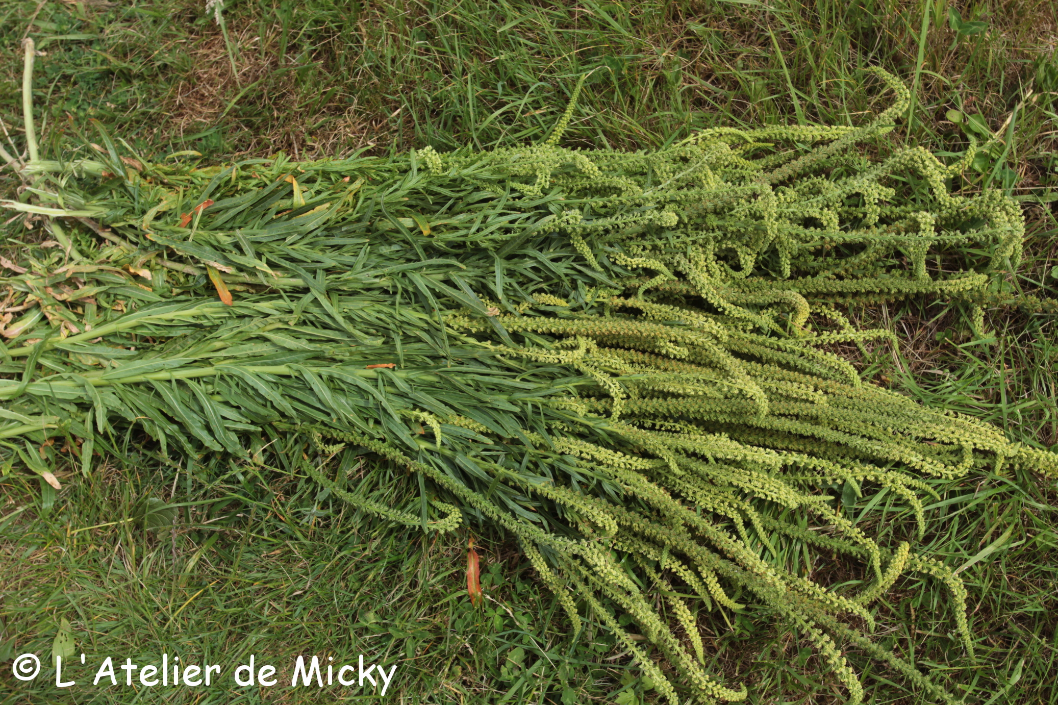 Sur une friche en travaux, j’ai repéré de la gaude poussant à l’état sauvage et vu que le terrain va être retourné par des engins, j’ai récolté ce que je pouvais! En ce moment, elle est très repérable avec ses grandes tiges et ses inflorescences très longues! Ouvrez l’oeil, vous en trouverez peut-être?