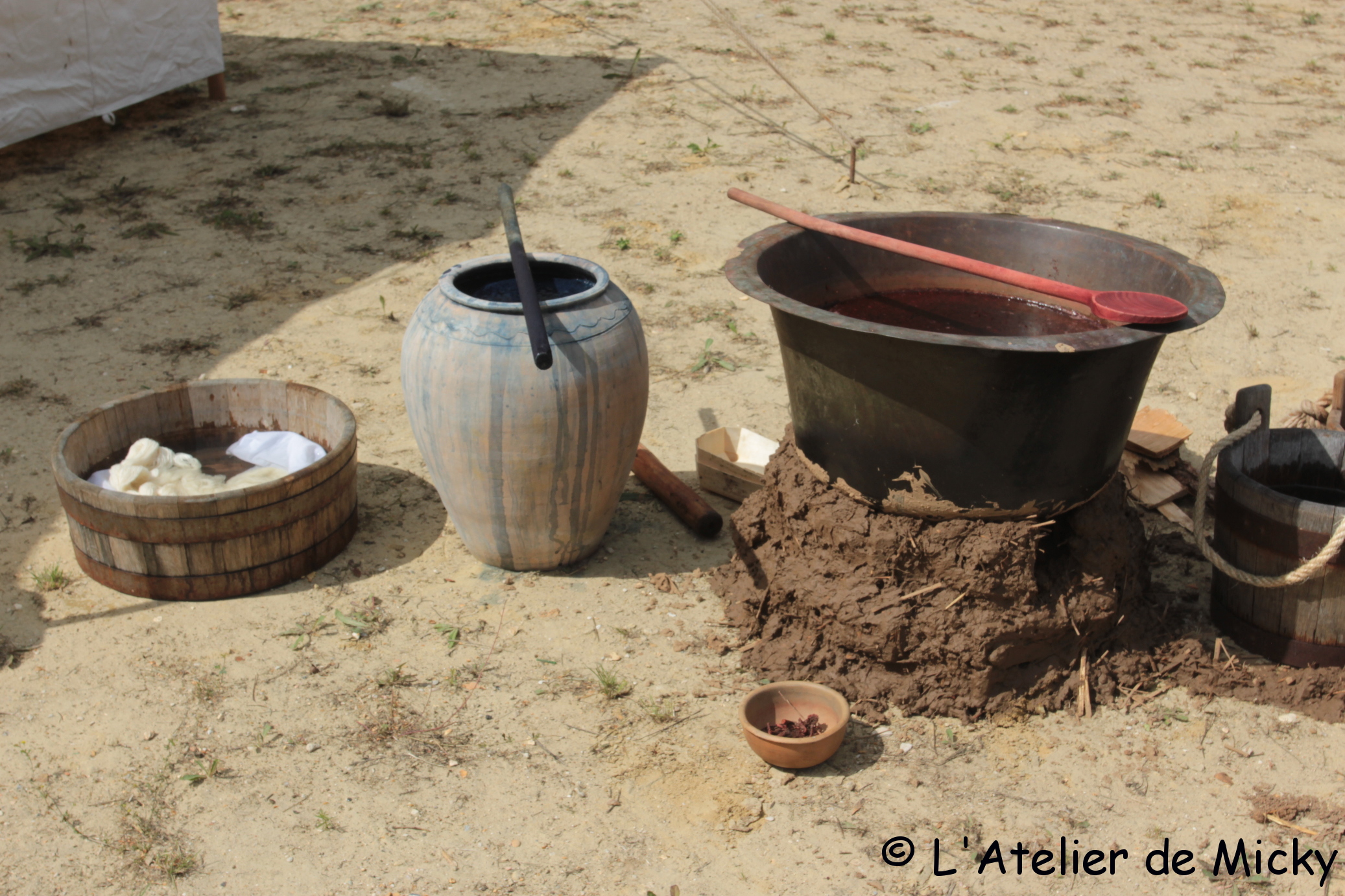I didn’t have the time to set up a really efficient fireplace to heat up my madder pot and « Lucius », my blue dolium, but less than 3 hours to install all of my stuff is a bit short!