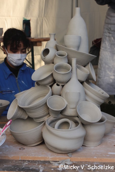 On my right, I had a great team of potters who turned pieces the whole day on Saturday before assembling them in a sculpture on Sunday.