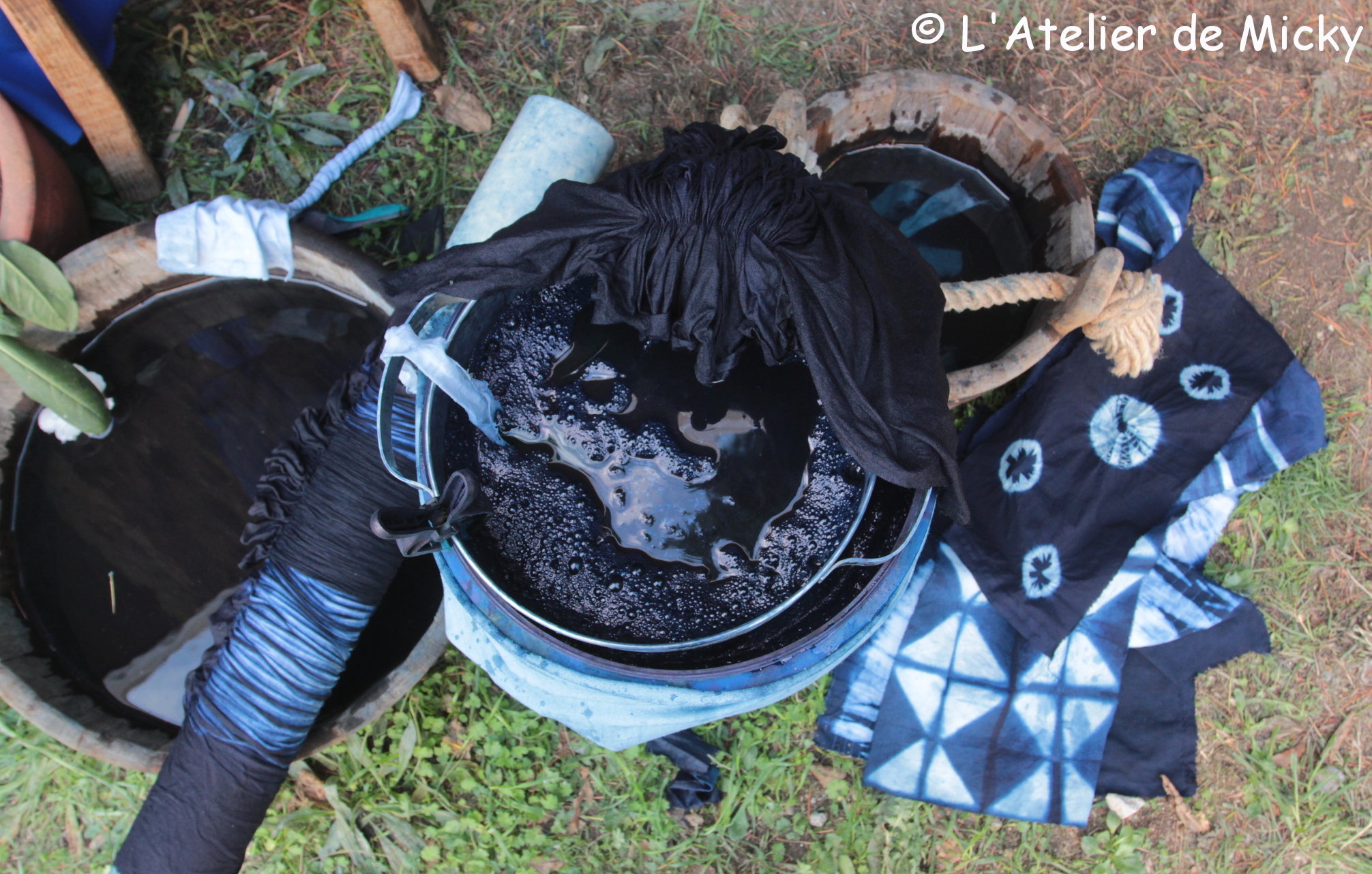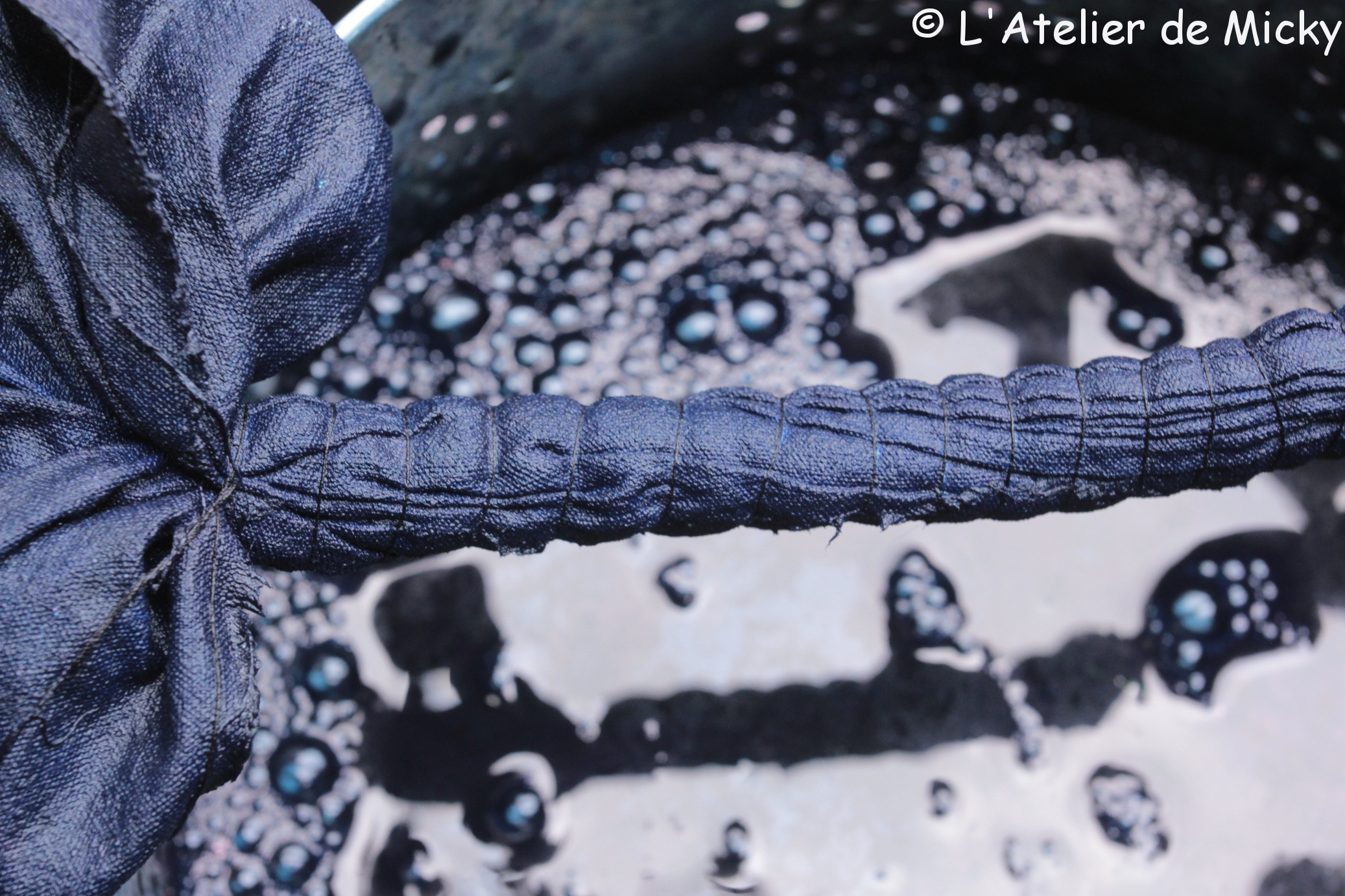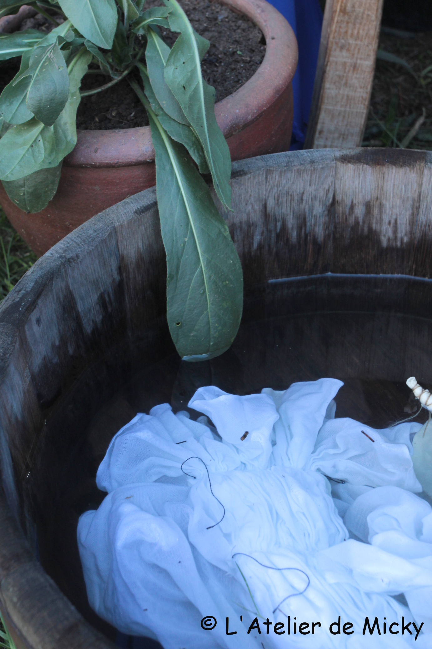 Last weekend, I was doing indigo dyeing demonstrations near my home, in Dreux. I joined the team of the association Terre d’Artistes, which offers workshops and courses in various arts and crafts (pottery, sculpture, engraving, glass, drawing, painting and more!). I will offer a one-day workshop there in January, about indigo dyeing. As I don’t have the right space at home yet to offer dyeing workshops, collaborating with an association who has the facilities is a great chance!