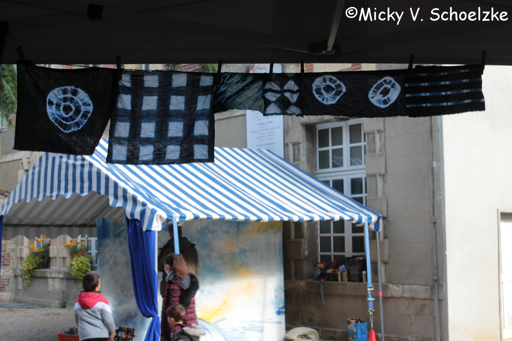 Terre d’Artistes invited me to do some demonstrations over the Saint Denis week-end, a traditional fair in the town. They chose indigo blue as a main theme for the association’s event, which was a nice gesture!