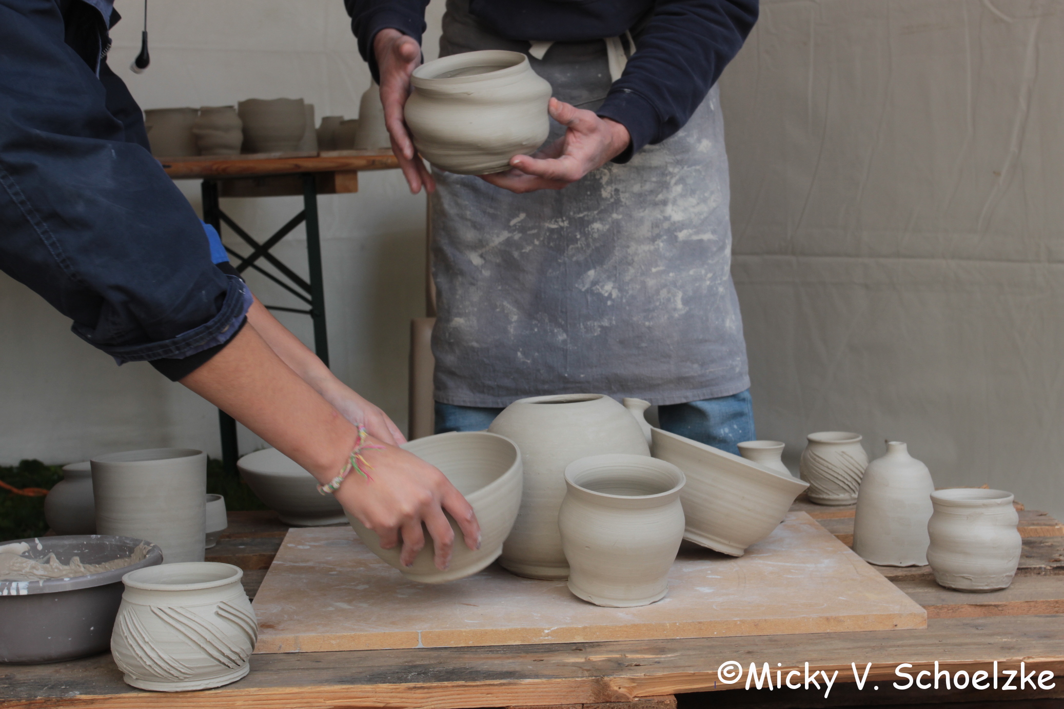 A ma droite, j’avais une équipe de choc de potiers qui ont tourné des pièces toute la journée du samedi avant de les assembler en une sculpture le dimanche.