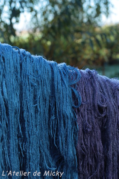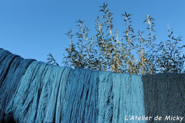 Premier épisode de gel l’autre jour, assez surprenant après beaucoup de douceur! Je vais doucement aller vers l’hibernation de mon espace de travail extérieur, j’avoue que je n’ai pas réussi à finir toutes mes couleurs dans toutes mes gammes de fils, mais généralement je profite des moments plus doux de la saison sombre pour teinter ce qui me manque au fur et à mesure.