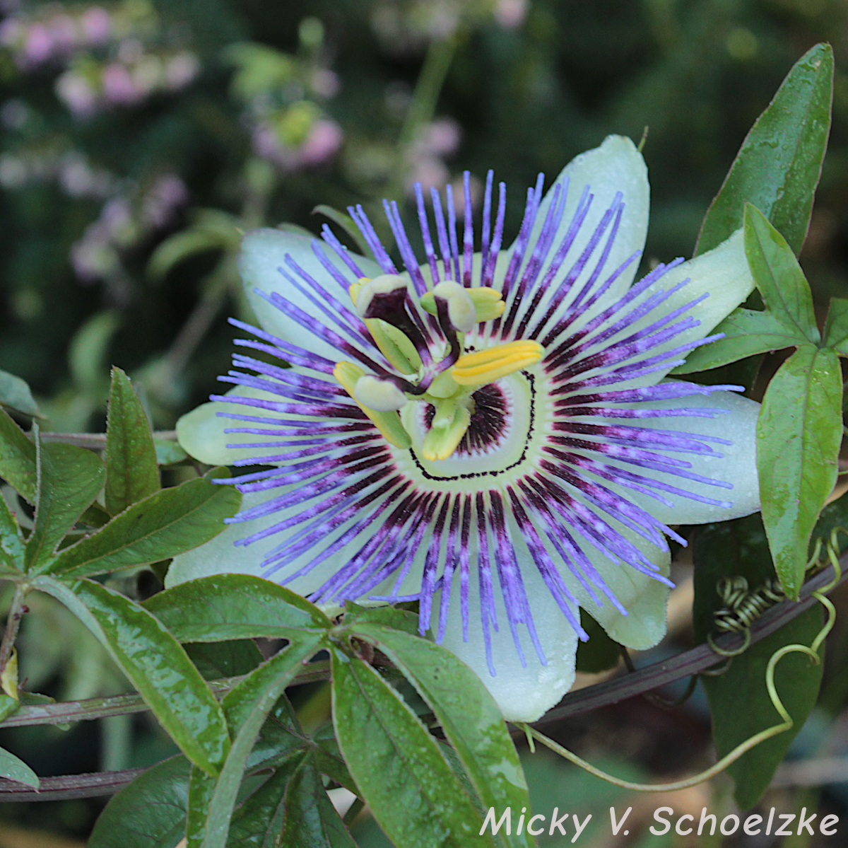 Tiens, une passiflore ! Ces fleurs sont magnifiques, tristes qu’elles ne tiennent absolument pas chez moi.