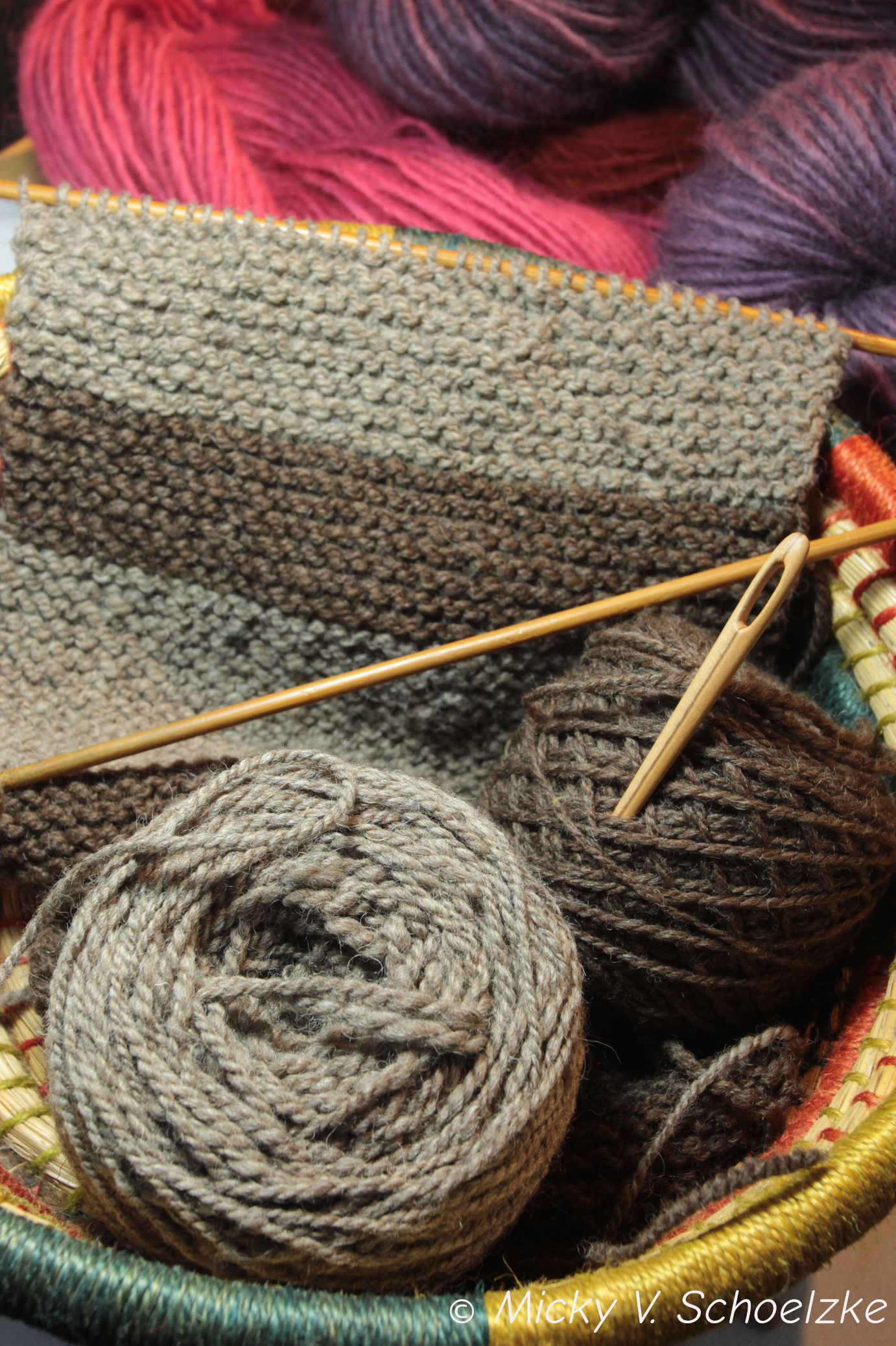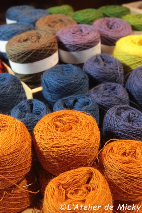 En rangeant mon atelier, j’ai retrouvé une boite dans laquelle j’avais stocké de chouettes écheveaux que j’ai filé il y a de nombreuses années, quand j’apprenais à lutiliser mon rouet nouvellement acquis, et dont je n’ai jamais rien fait. J’ai donc décidé de les tricoter, même si je ne suis toujours pas une pro du tricot (et je ne risque pas de le devenir!), j’aime bien m’occuper les mains en attendant que mes cuves chauffent ou bien le soir au coin du feu!