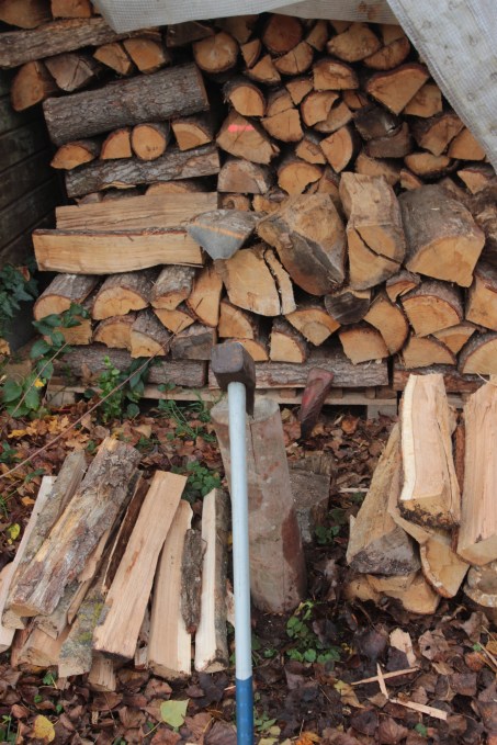 Fire means wood! Little logs for my firepit, bigger oens for the house boiler! Cutting wood can be tedious, but it’s also a great way to relieve stress and to warm up!