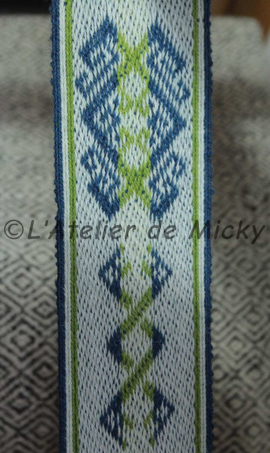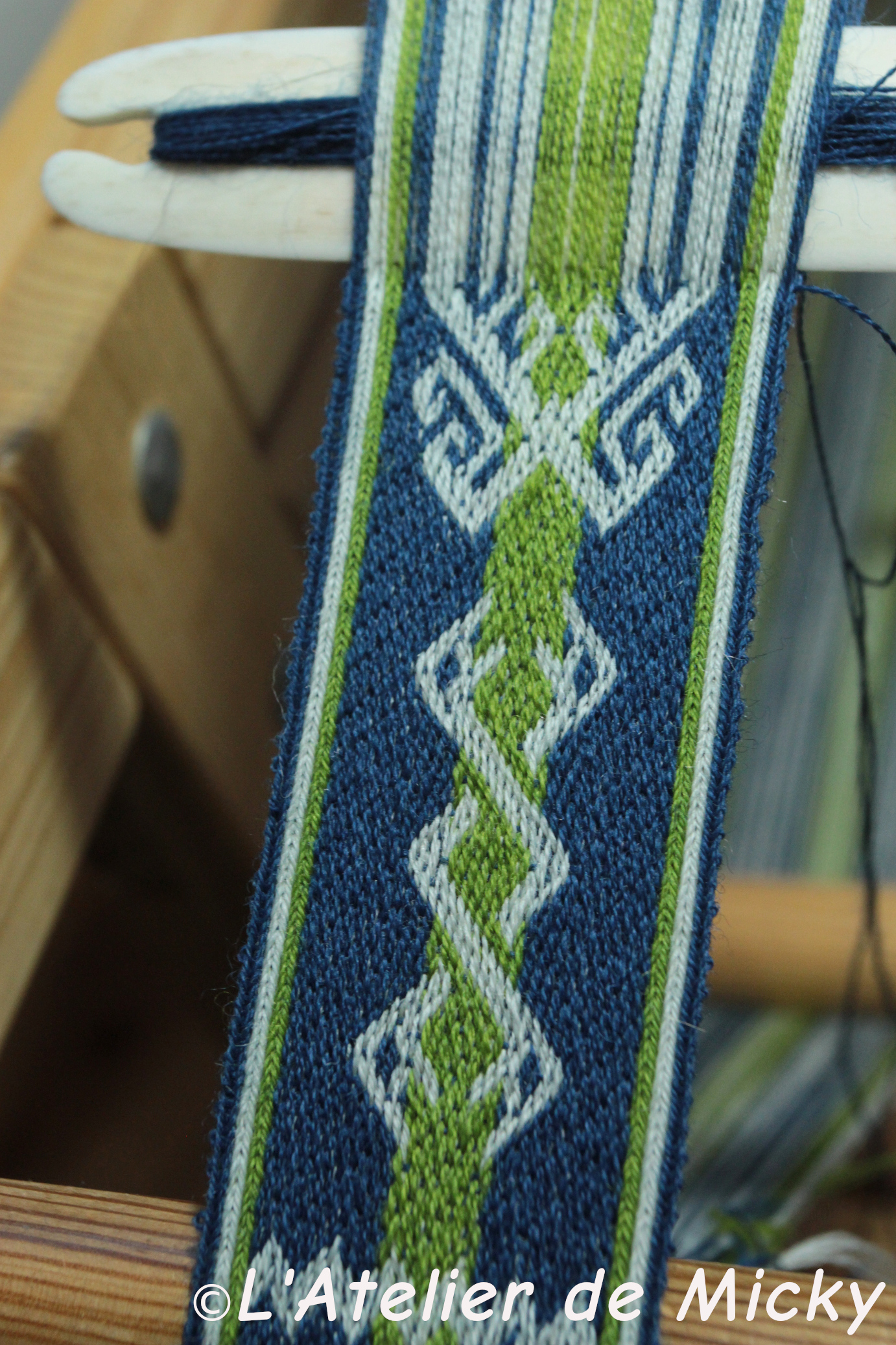 Ces motifs sont magnifiques et j’ai donc à présent deux beaux tissages aux tablettes en cours dans l’atelier, sur lesquels je peut travailler selon l’humeur du jour.
