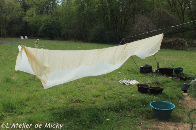 I have several orders for wool and silk fabrics, some of which are quite large. It’s hard to imagine the amount of work involved, especially if you are a perfectionist and don’t want any spots or streaks… Well, it’s often impossible to have a « perfect » piece, but it doesn’t have to look like tie and dye!