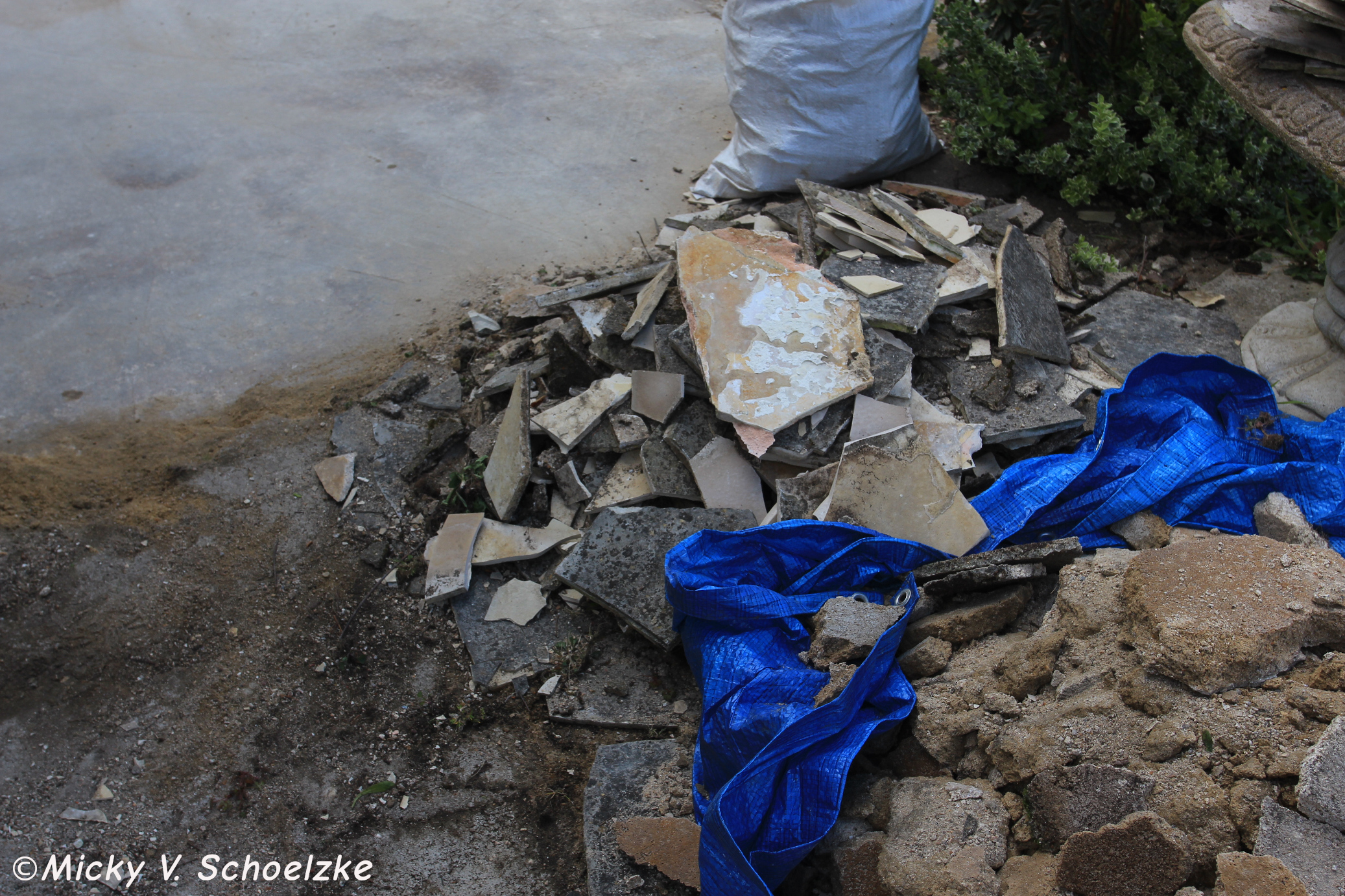 J’ai également quelques « menus » travaux autour de la maison… Dont un pan de terrasse à rénover, ou plutôt à détruire! Il y a beaucoup de choses dans l’actualité qui me mettent en colère et j’avoue que casser des dalles et du béton pourri est un excellent moyen de se défouler et décharger sa colère! N’étant plus de toute fraîcheur (un peu comme ma terrasse!), je dois juste faire attention à mes articulations et mon dos, déjà bien sollicités par mon travail! C’est donc un chantier à plus long terme, mais je n’attends pas d’invités prochainement malheureusement, donc le chaos peut durer un peu…
