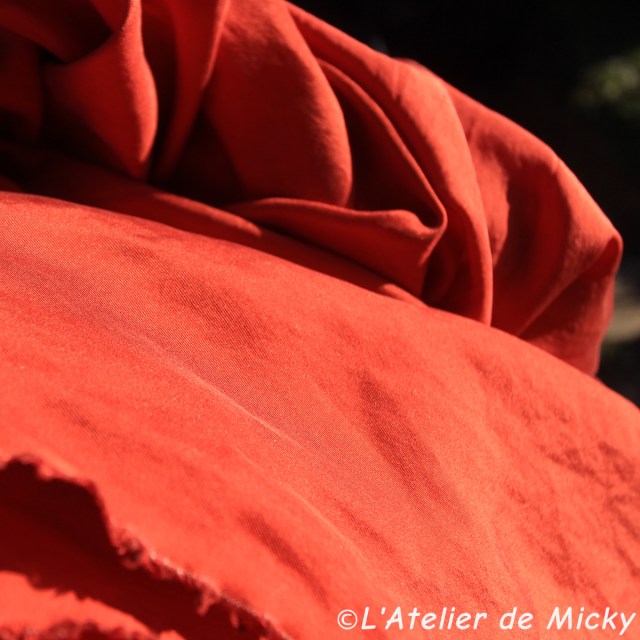 Le résultat est très beau je trouve et on se retrouve avec une belle nuance plus « froide » qu’avec la garance pure, avec une jolie profondeur, qui n’est pas toujours simple à obtenir sur des tissus aussi fins.