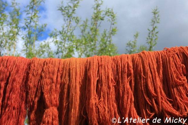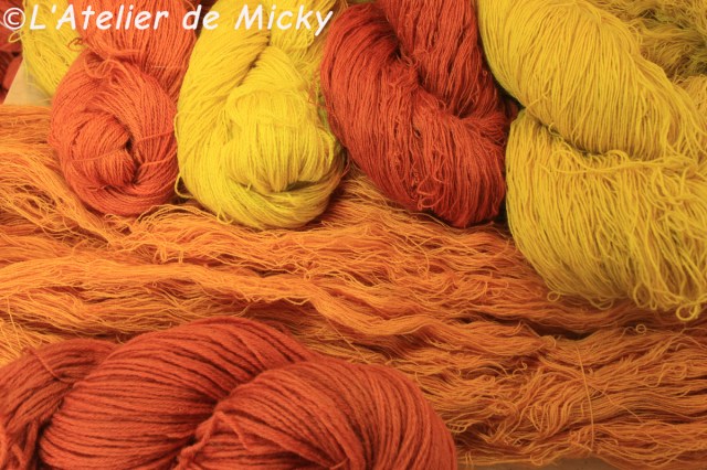 Comme j’étais dans les grands bains de gaude et de garance, j’ai teinté des jaunes, des rouges de diverses nuances et des oranges!