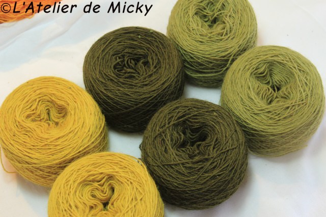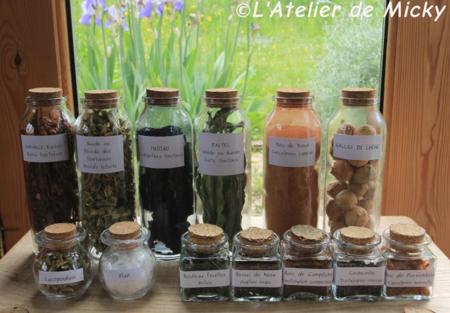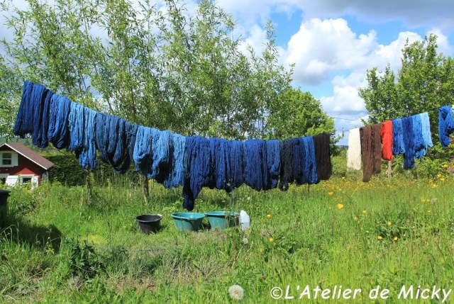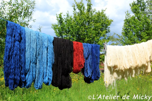 Je n’ai pas eu le temps de publier ici au fur et à mesure de mes travaux, alors cet article sera un peu bigarré, avec beaucoup de photos et peu de texte! Pas mal de teintures sont sorties de mes chaudrons depuis quelques semaines et malgré la météo compliquée, tout avance relativement bien.