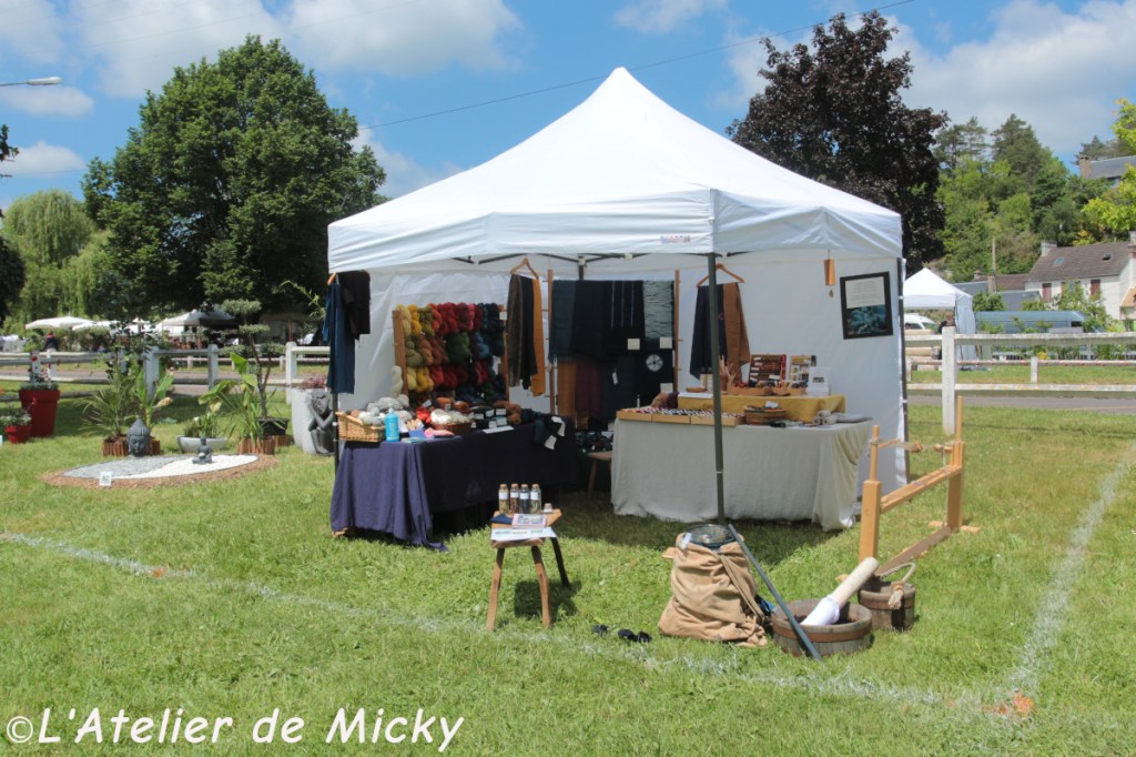 Mon premier marché de l’année fut local, dans le cadre d’une fête des parcs et des jardins, organisée sur le site du musée du peigne à Ezy sur Eure, une commune de l’Eure proche de chez moi. Il y avait des producteurs de plantes, des paysagistes et des artisans et producteurs locaux. Une façon de recommencer les marchés en douceur pour moi. J’y ai fait quelques démonstrations de teinture indigo et de tissage aux tablettes pour promouvoir mes stages au niveau local. Quelques chouettes rencontres sous le soleil!