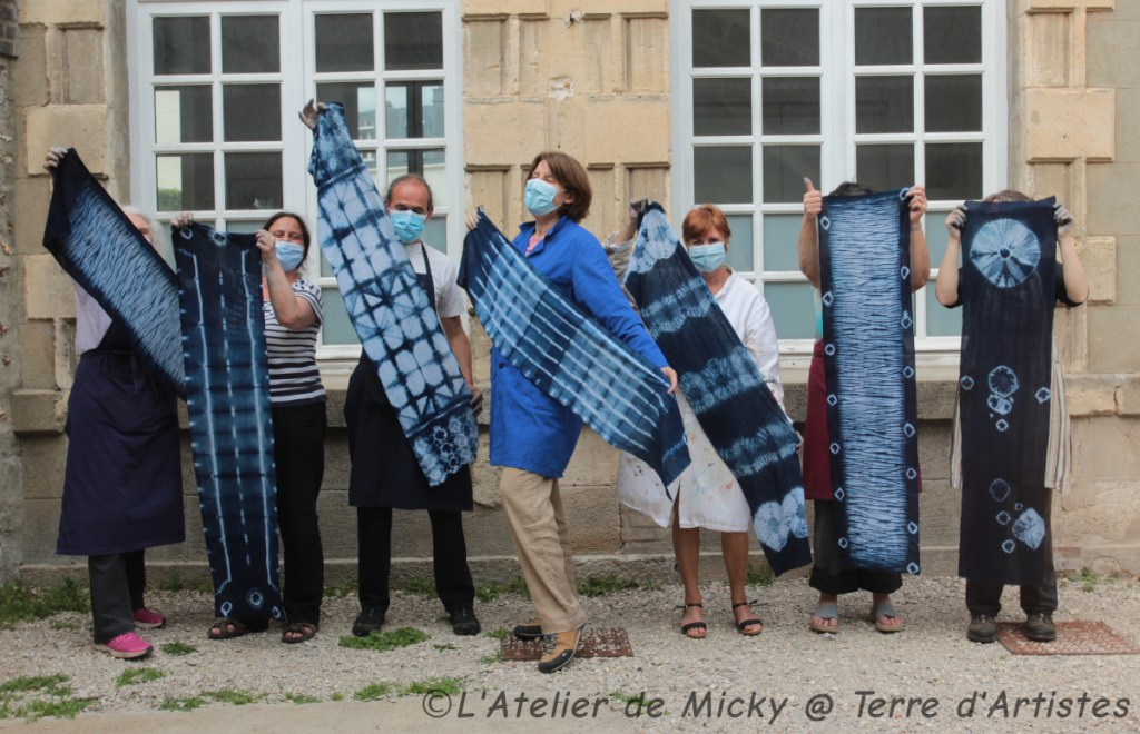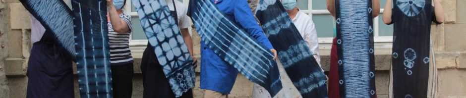 L’atelier de découverte de l’indigo à Dreux était initialement prévu en janvier, mais la situation sanitaire ne nous avait pas permis de le maintenir. C’est dans les locaux de la belle association Terre d’Artistes de Dreux, à la maison des arts de Montulé, que s’est tenu cet atelier. Durant ce genre de journée, je m’attache à initier les participants à la teinture en bleu de façon à la fois pédagogique et ludique, en leur proposant des nouages et teintures à réserves façon shibori. Je pratique un peu le shibori mais à un petit niveau, mon cœur de métier restant les teintures historiques, mais même à un petit niveau, on s’amuse déjà beaucoup! Pour de vrais stages d’initiation au shibori, je conseille vivement d’aller voir du côté de l’Atelier de Mademoiselle C qui en propose et qui a une belle vision de la pratique de la teinture végétale…